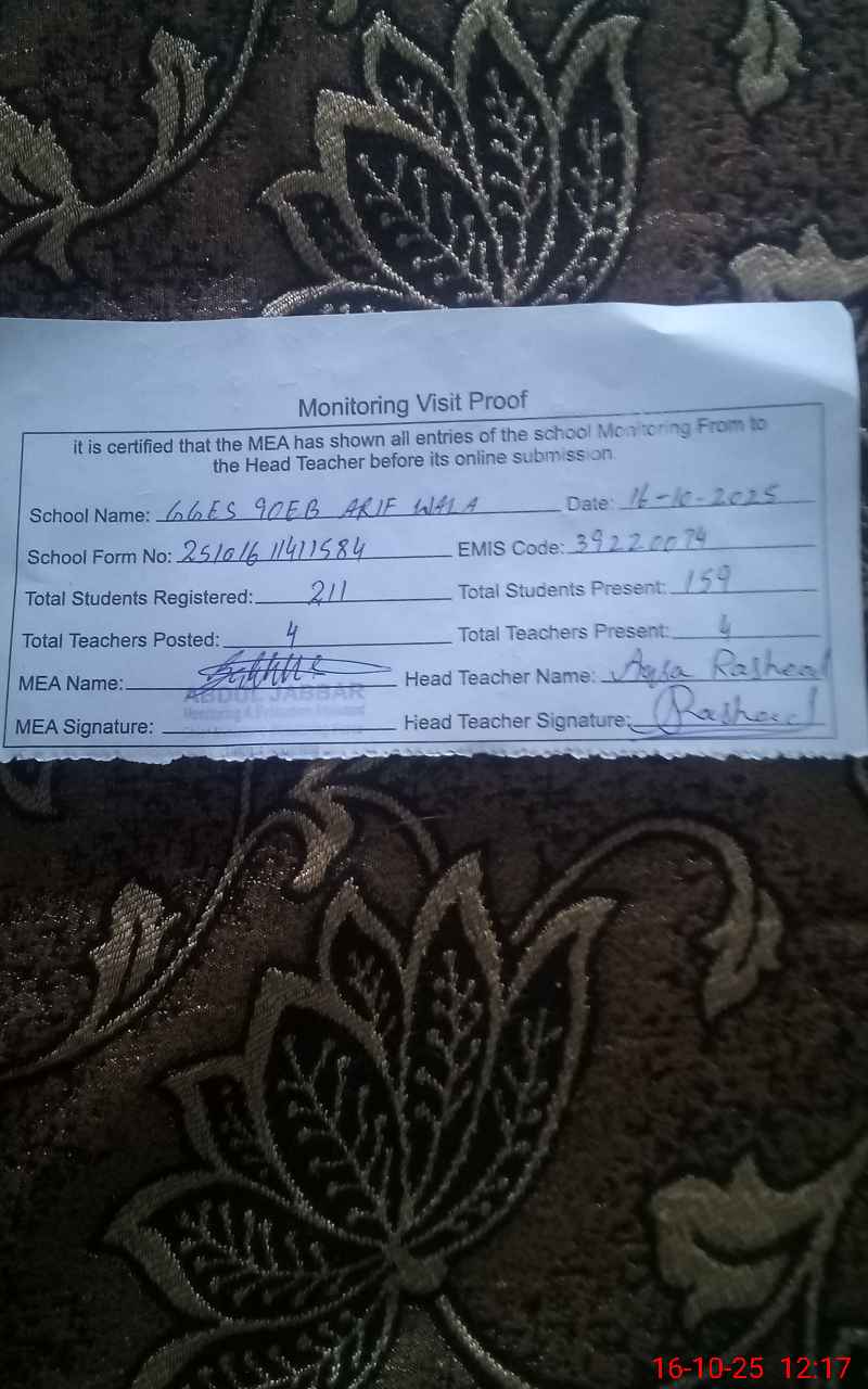 | EMIS Code: 39220074 | Name of School: GGES 90 EB ARIFWALA | |||