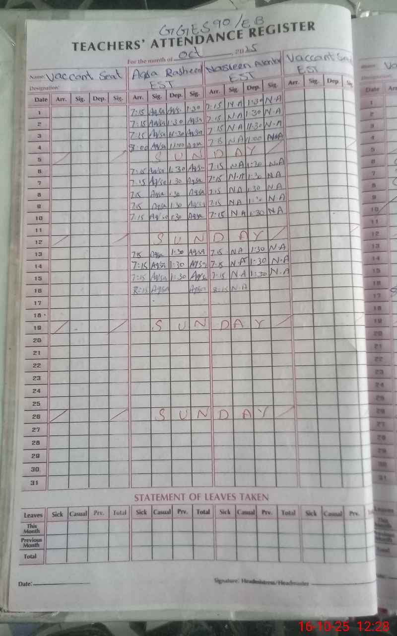 | Name: AQ**** RA**** Designation: (School Headmaster's/Headmistress's) EST (MATH) Phone/Cell Number: 03**** |