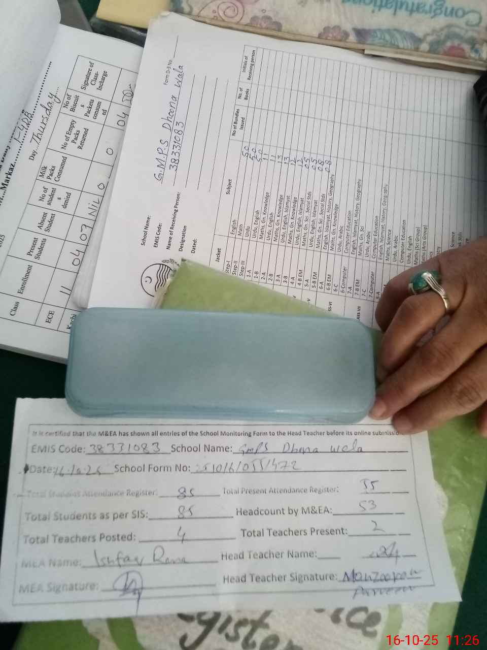 | EMIS Code: 38331083 | Name of School: GMPS DHOONA WALA | |||