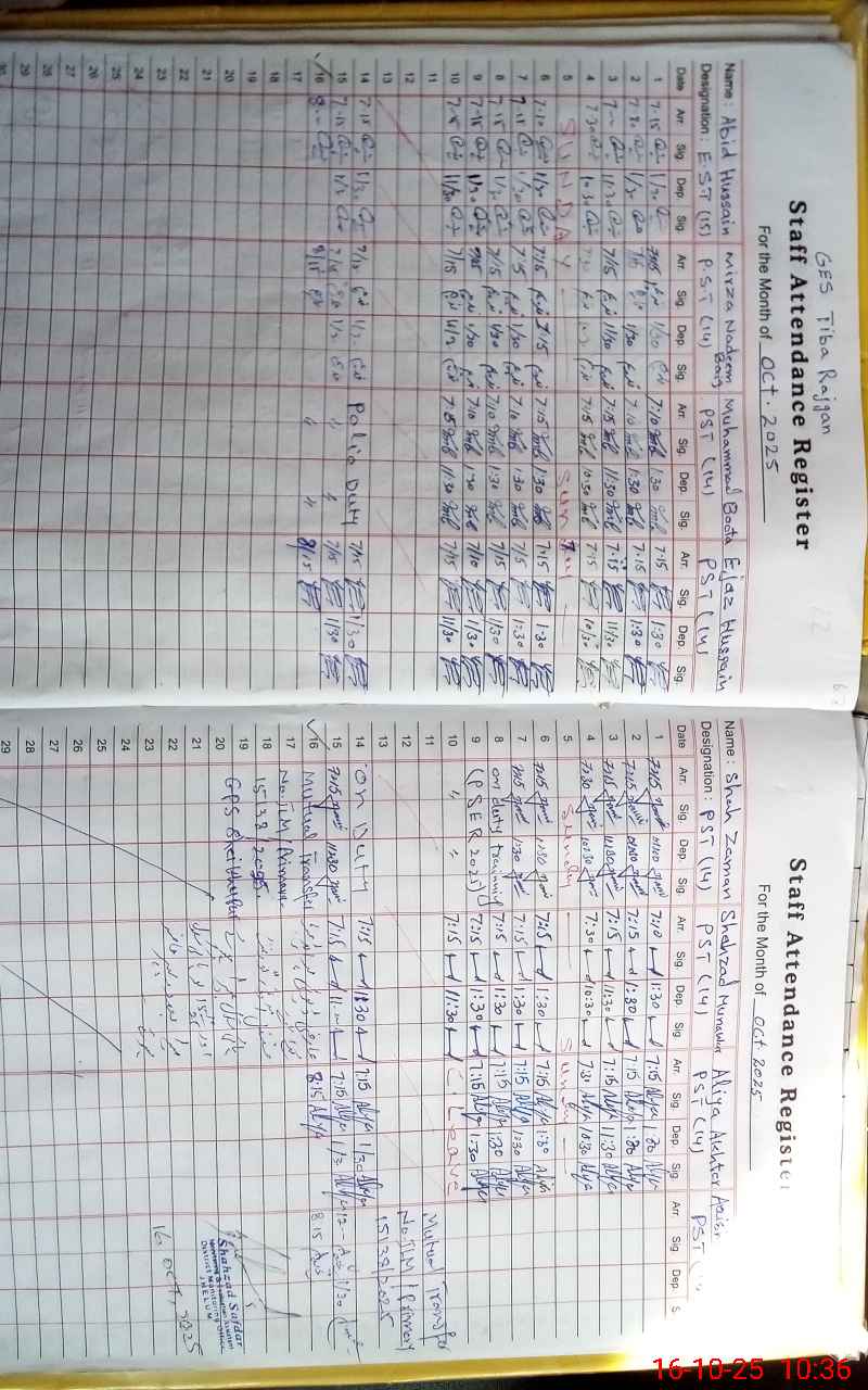 | CNIC | Full Name | Designation | R/C | Absence During Last Calender Month |
