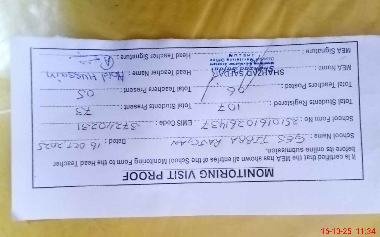 | Attendance Register | Head Teacher | MEA with School | Visit Proof |