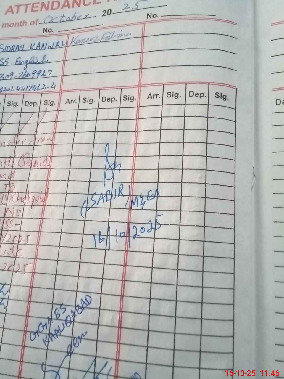 | CNIC | Full Name | Designation | R/C | Absence During Last Calender Month |