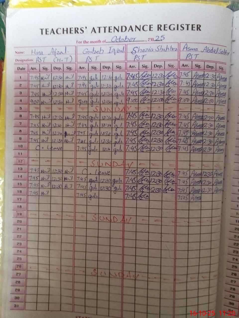 | CNIC | Full Name | Designation | R/C | Absence During Last Calender Month |