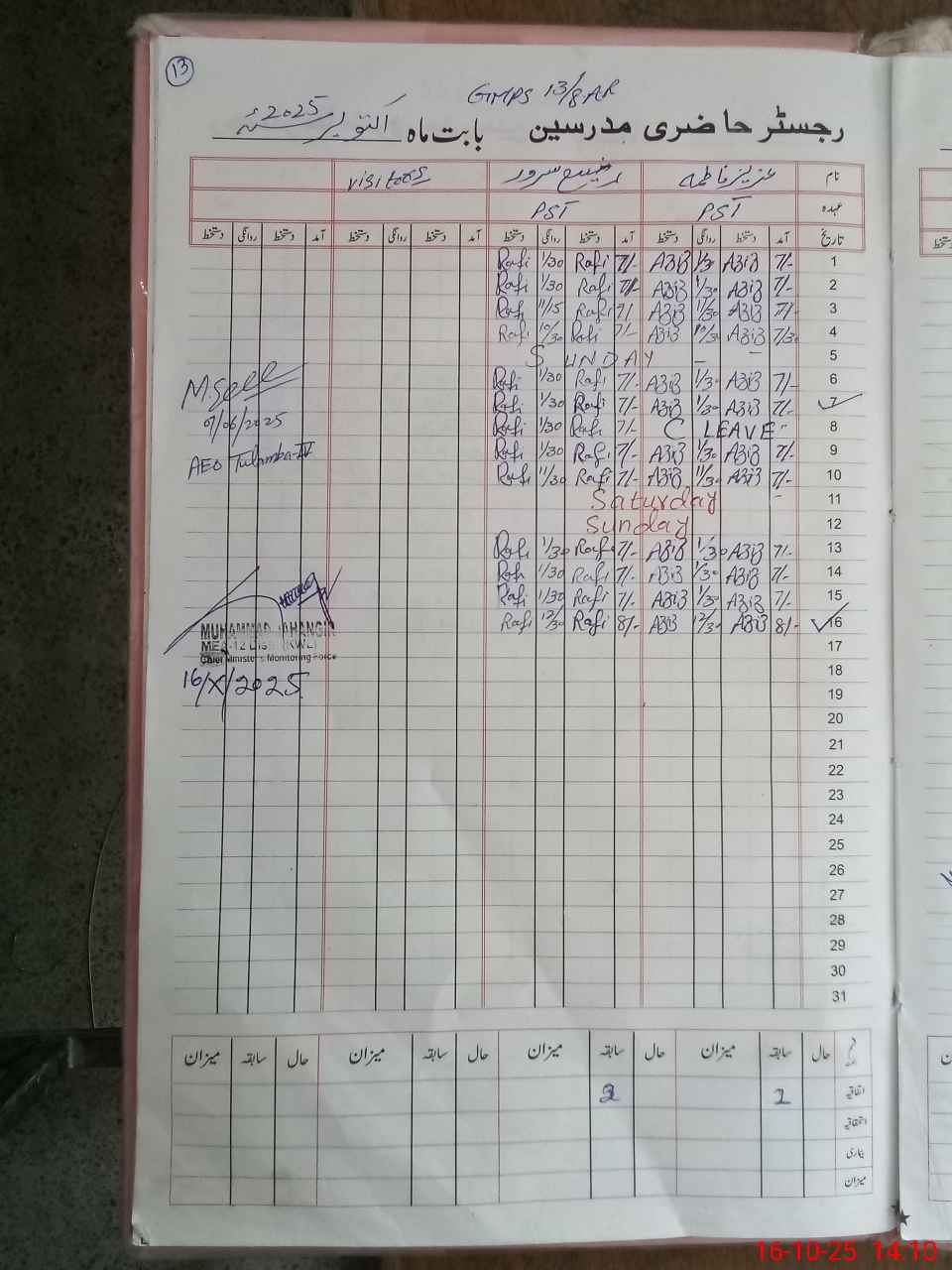 | Name: Az**** Fa**** Designation: (School Headmaster's/Headmistress's) PST Phone/Cell Number: 03**** |
