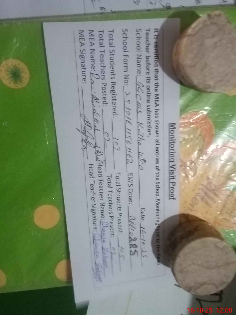 | Certified that this School was Inspected by the Undersigned MEA/DMO Today and the Information Stated Above is as Per Record. | |||||