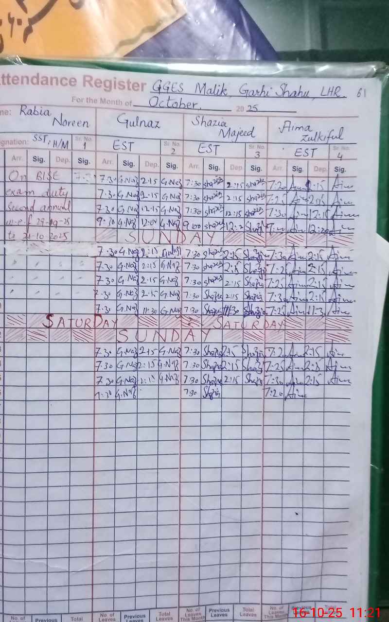 | 33**** | Ha**** Ra**** No**** | Regular | 0 | 2 | 0 | 0 | 0 | 0 | 0 | 0 | 0 | Exam Duty | |