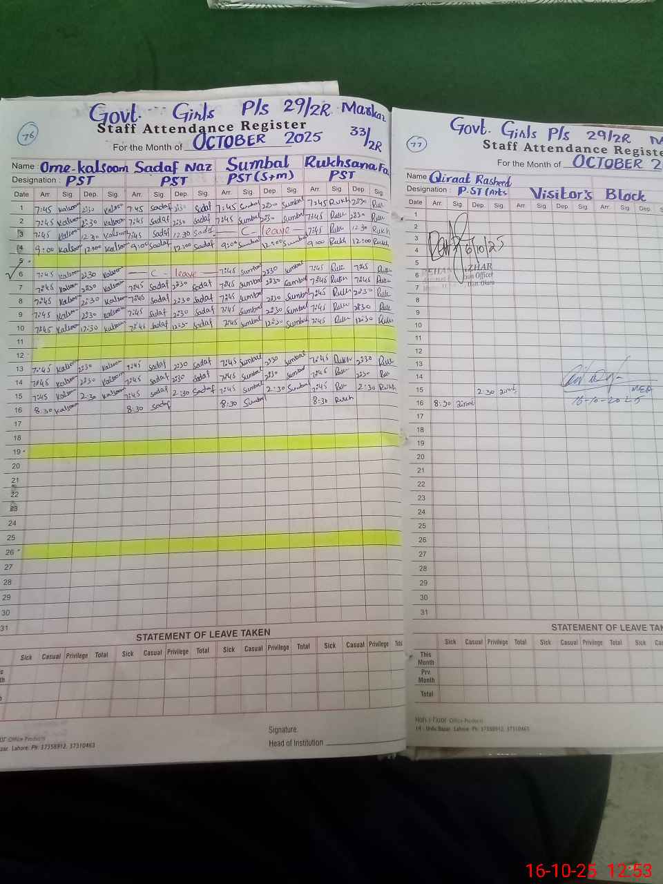 | Name: SH**** AM**** Designation: (School Headmaster's/Headmistress's) PST Phone/Cell Number: 03**** |