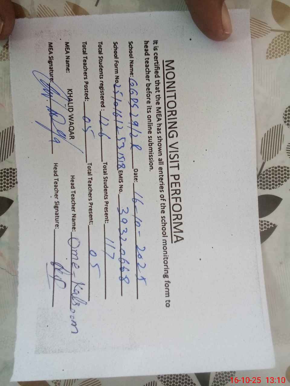 | Certified that this School was Inspected by the Undersigned MEA/DMO Today and the Information Stated Above is as Per Record. | |||||