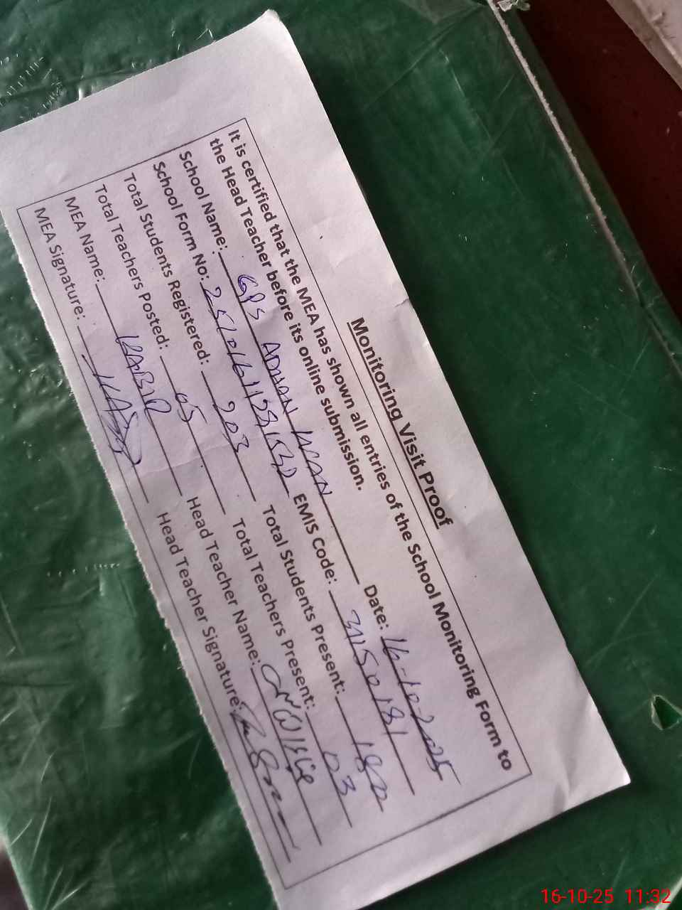 | EMIS Code: 31150181 | Name of School: GPS ADHAN WAH | |||