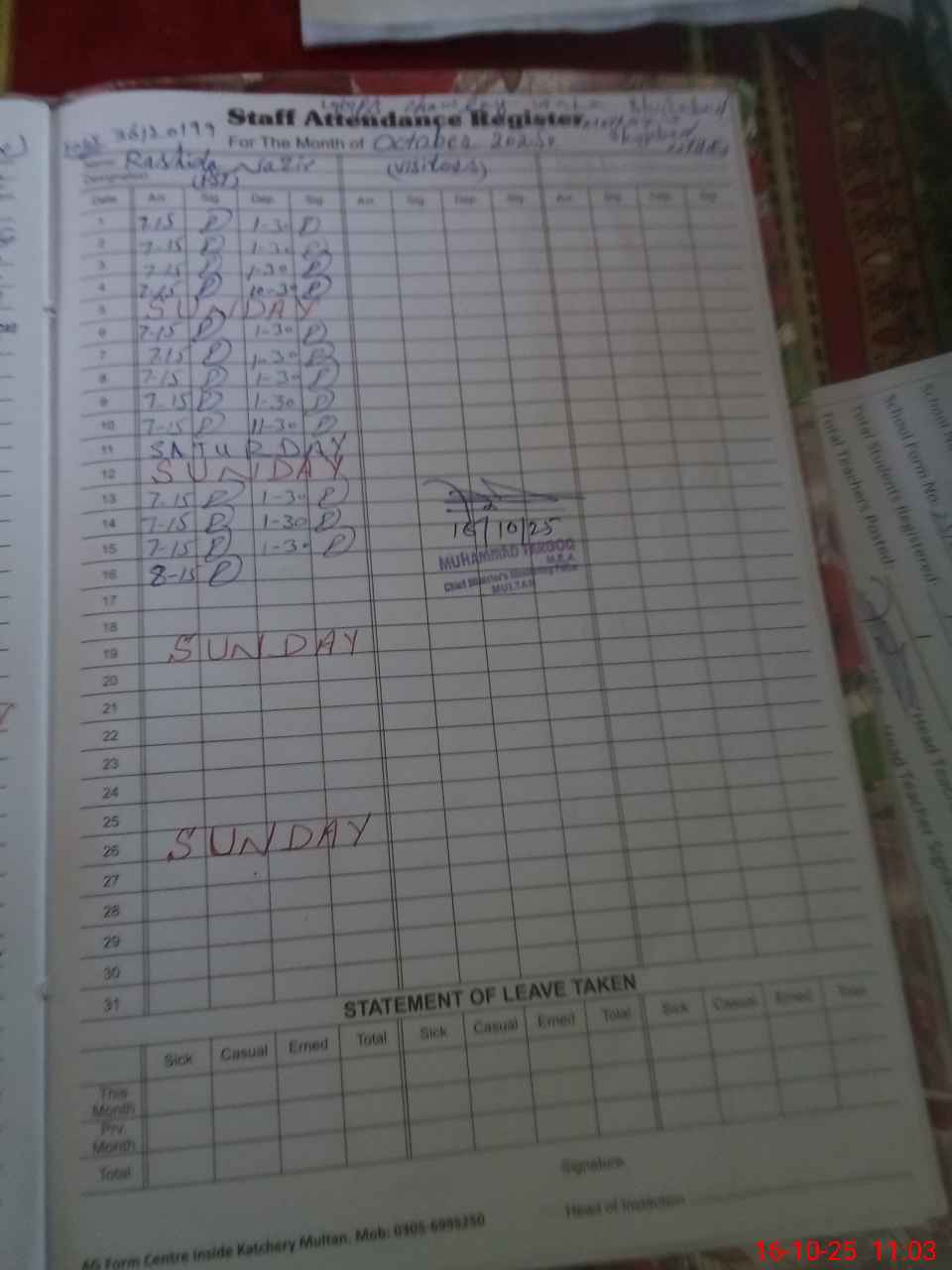 | Name: RA**** NA**** Designation: (School Headmaster's/Headmistress's) ESE (ARTS ) Phone/Cell Number: 03**** |