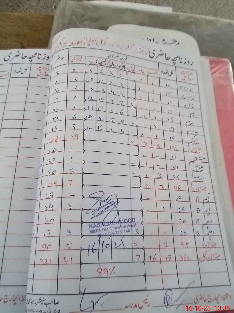 | CNIC | Full Name | Designation | R/C | Absence During Last Calender Month |
