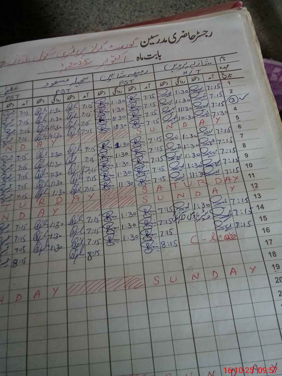 | EMIS Code: 37420279 | Name of School: GGPS MULTAN KHURD | |||
