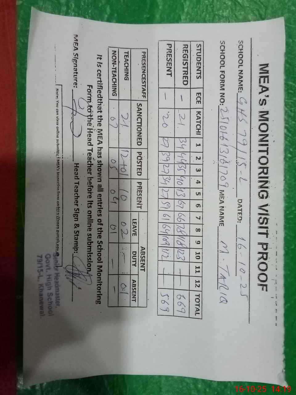 | EMIS Code: 36420652 | Name of School: GHS 79/15-L, KHANEWAL | |||