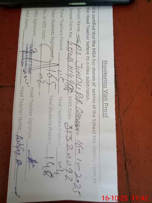 | Attendance Register | Head Teacher | MEA with School | Visit Proof |