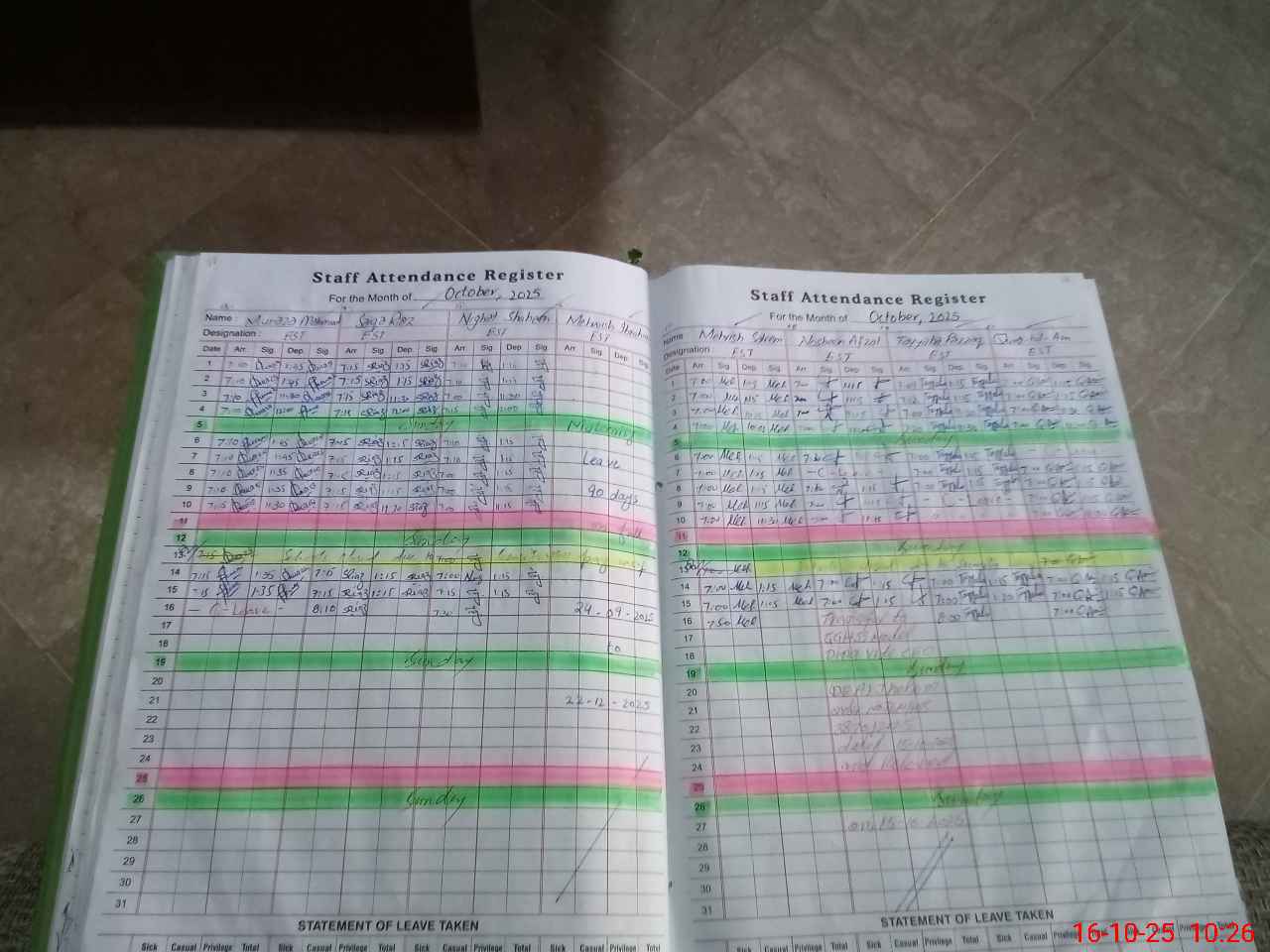 | Leave | Duty | Absent | Maternity | Medical | Ex- Pak |