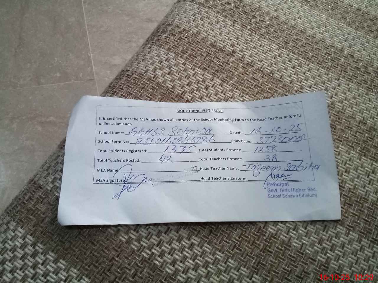 | EMIS Code: 37230002 | Name of School: GGHSS SOHAWA | |||