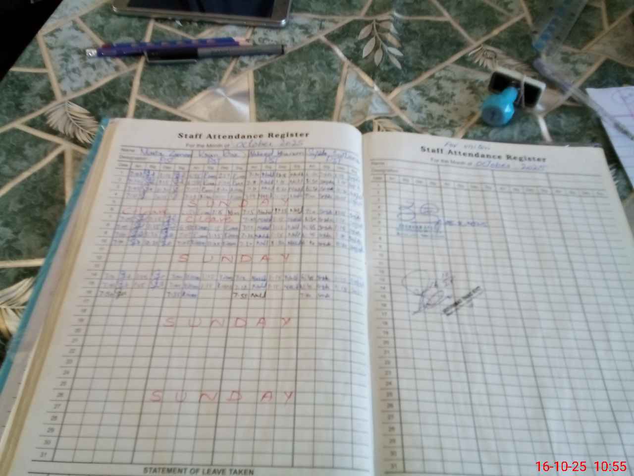 | Leave | Duty | Absent | Maternity | Medical | Ex- Pak |