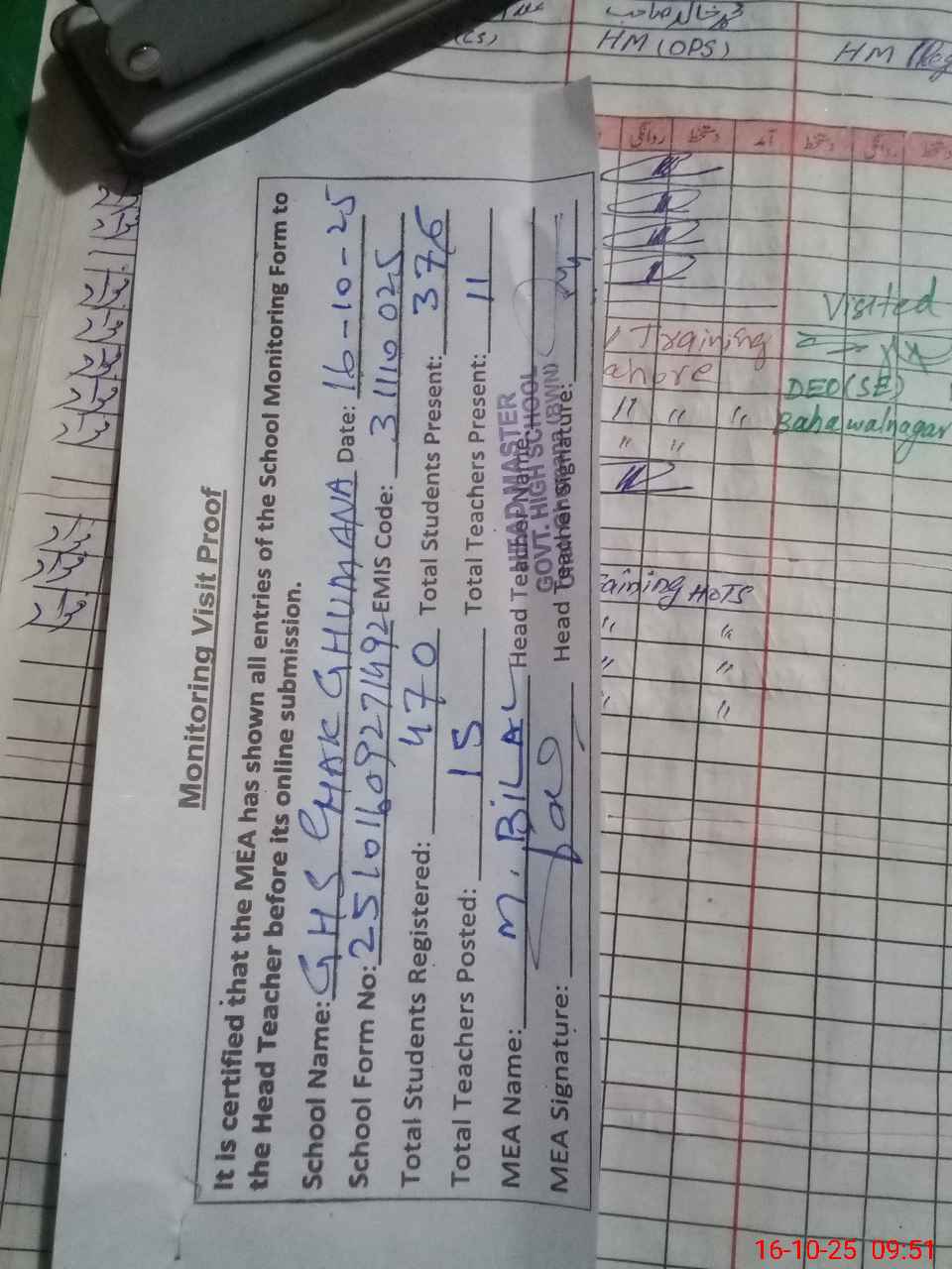 | EMIS Code: 31110025 | Name of School: GHS CHAK GHUMANA | |||