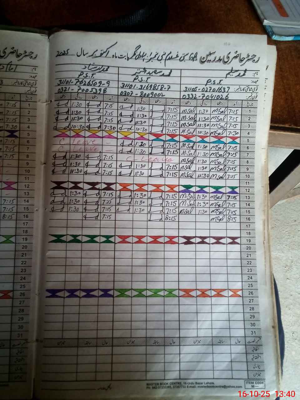 | CNIC | Full Name | Designation | R/C | Absence During Last Calender Month |