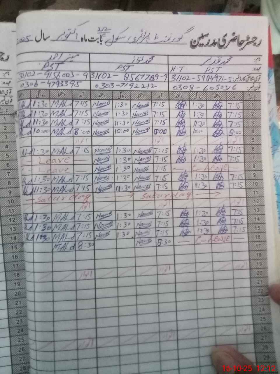 | Name: Mo**** Qa**** Designation: (School Headmaster's/Headmistress's) PST Phone/Cell Number: 03**** |