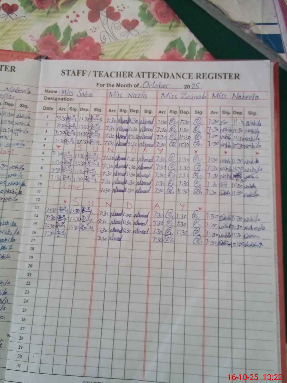 | CNIC | Full Name | Designation | R/C | Absence During Last Calender Month |