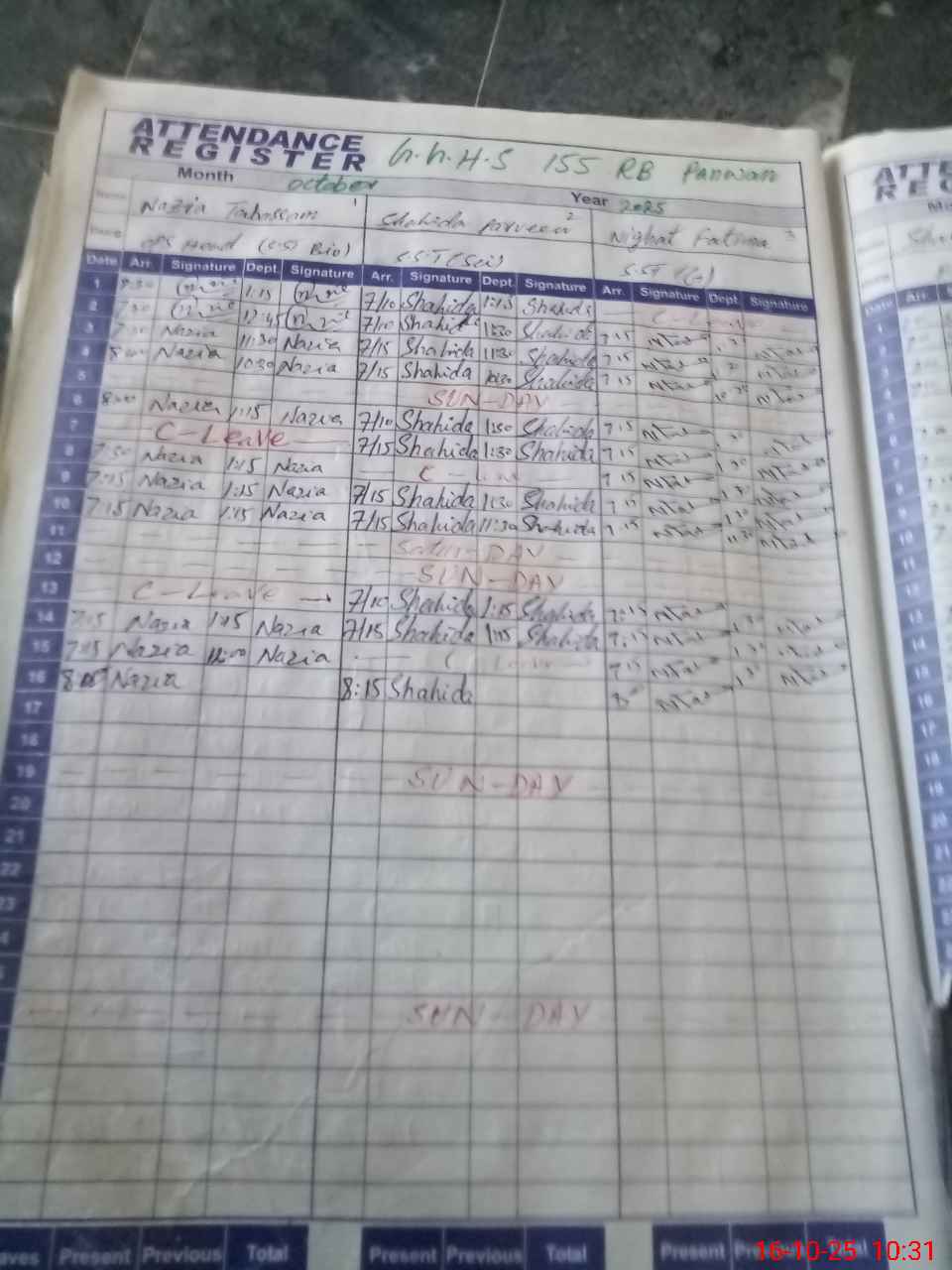 | Leave | Duty | Absent | Maternity | Medical | Ex- Pak |