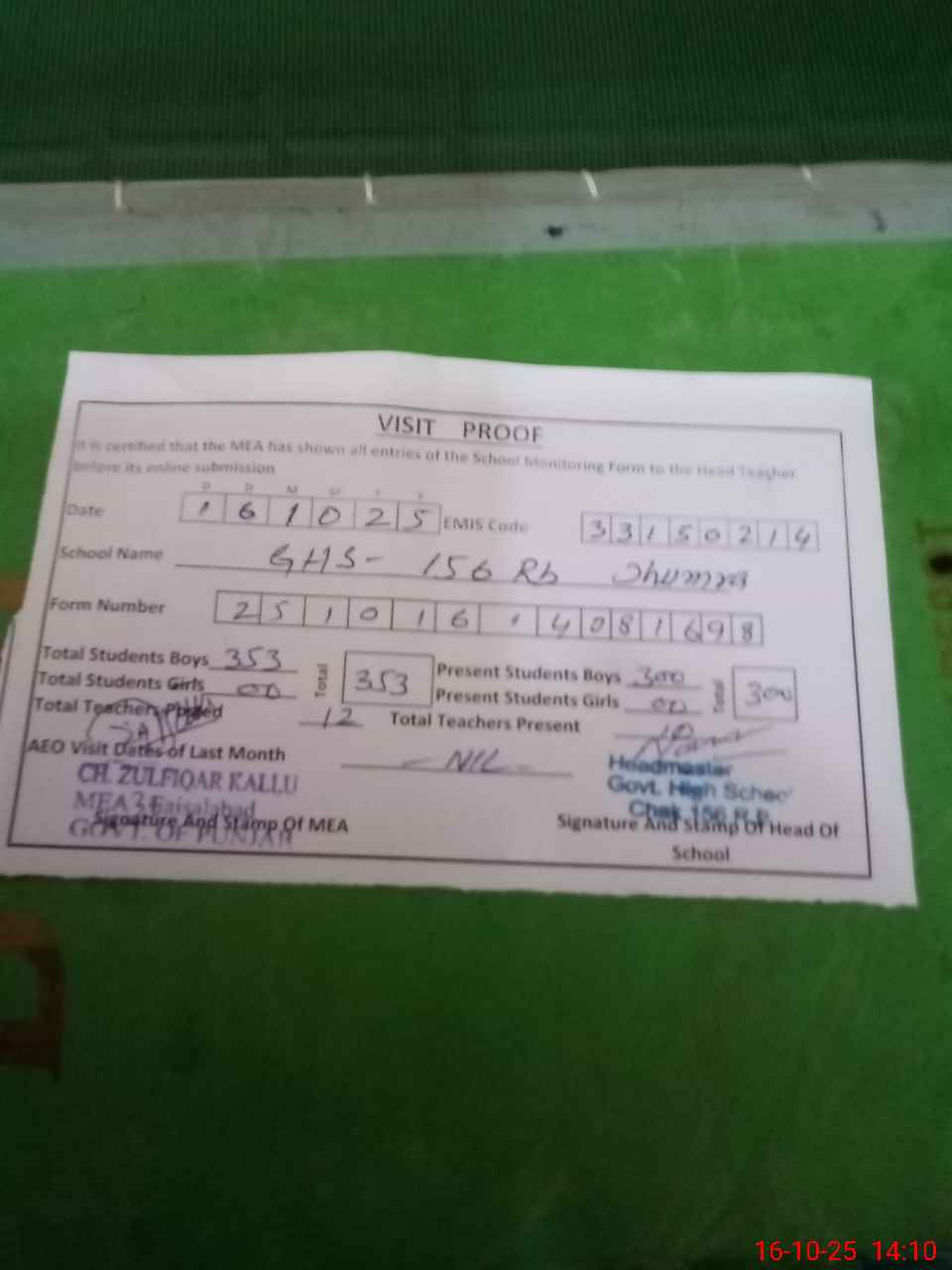 | EMIS Code: 33150214 | Name of School: GHS CHAK 156 RB CHAK JHUMRA FSD | |||