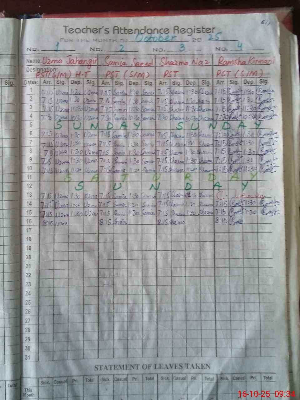 | Name: UZ**** JA**** Designation: (School Headmaster's/Headmistress's) PST Phone/Cell Number: 03**** |