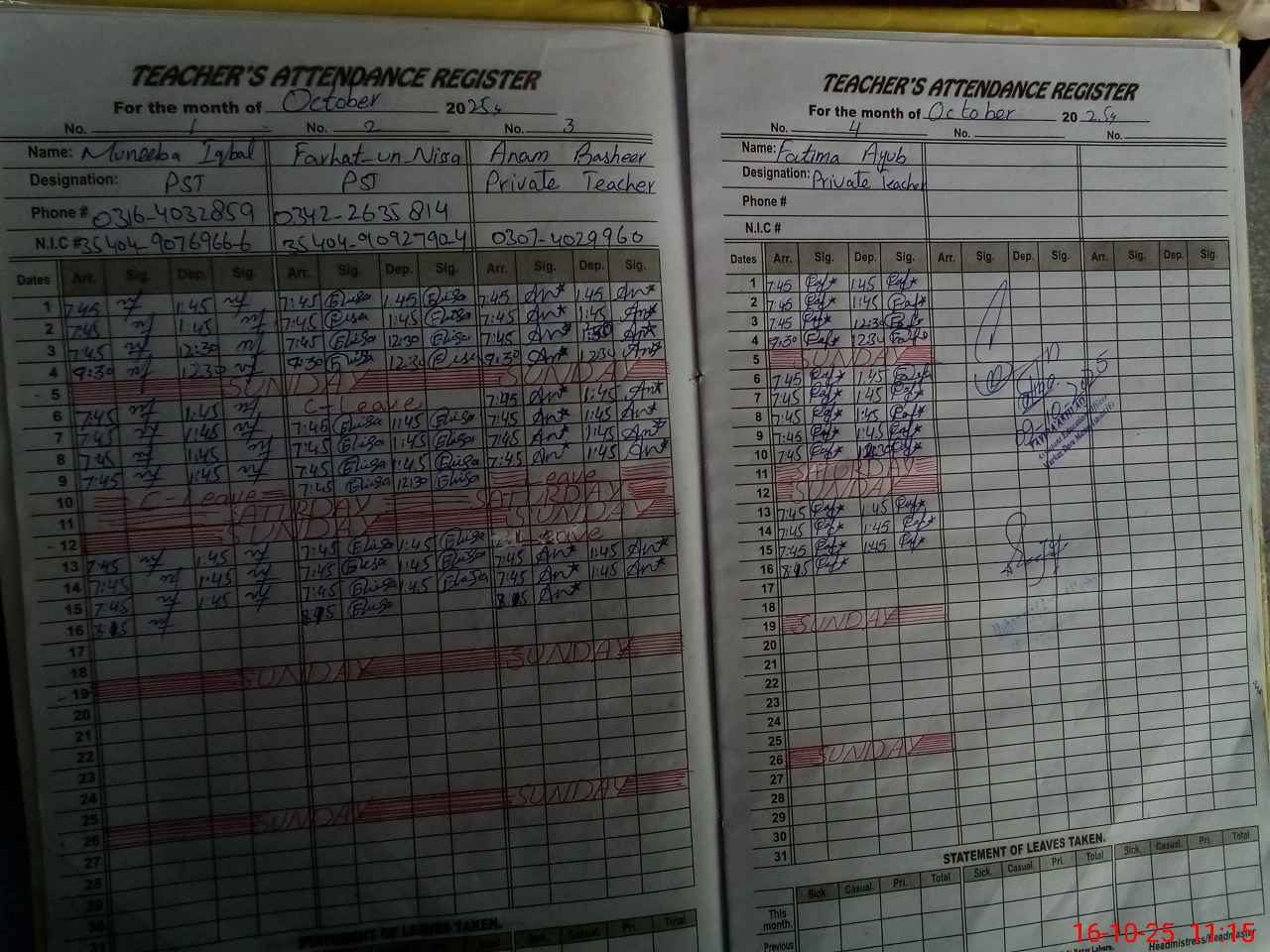 | Name: MU**** IQ**** Designation: (School Headmaster's/Headmistress's) PST Phone/Cell Number: 03**** |
