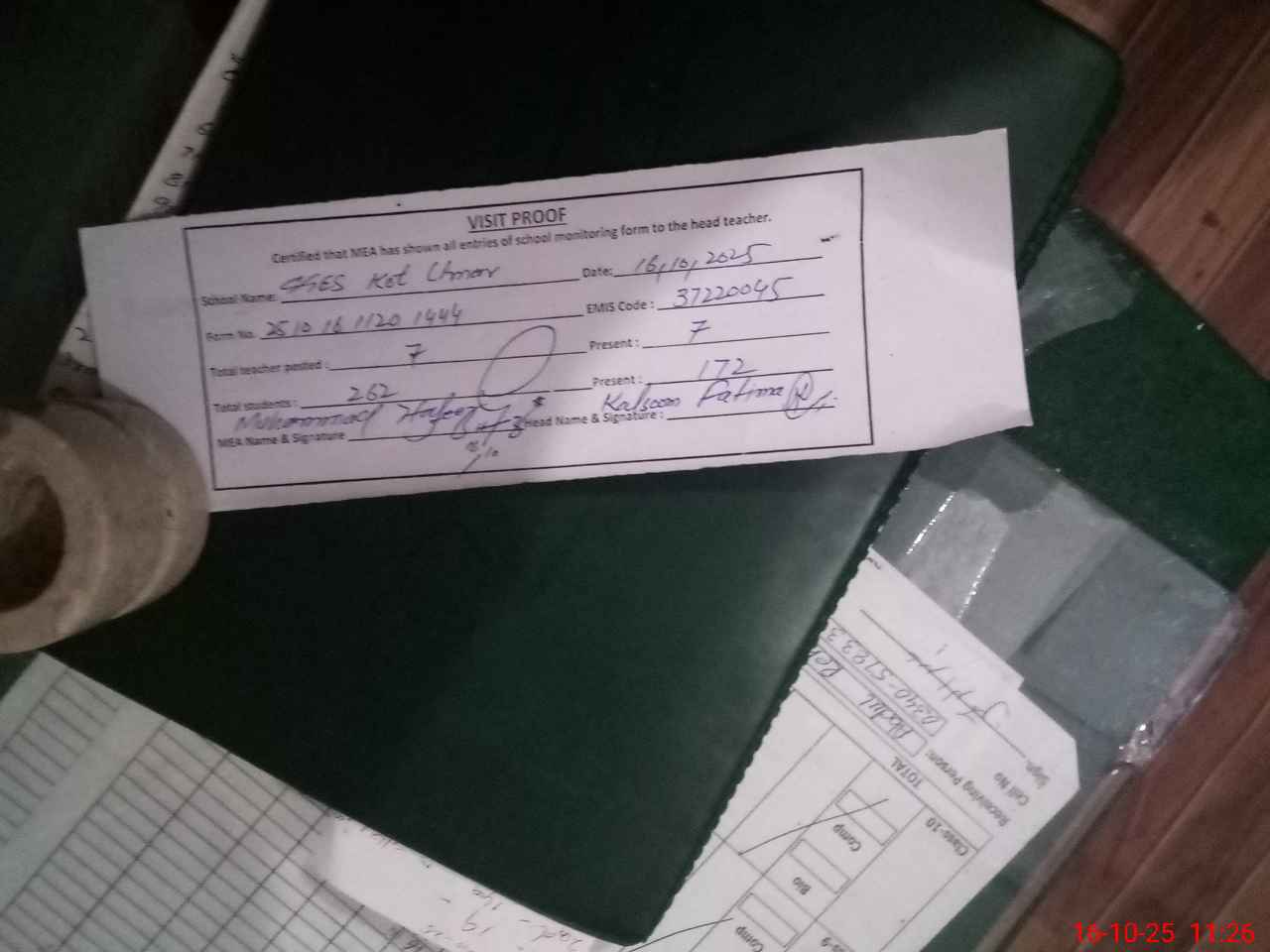 | EMIS Code: 37220045 | Name of School: GGES KOT UMMAR | |||