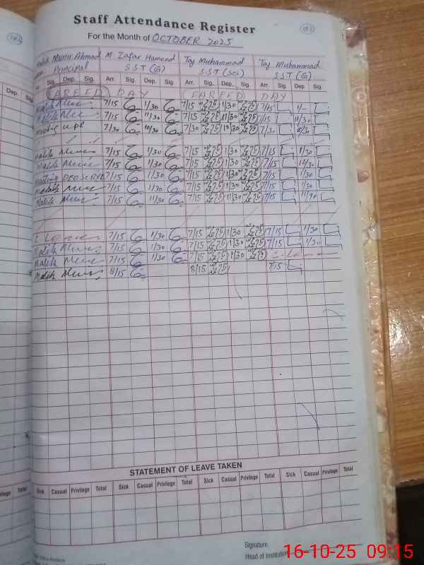 | Name: Mu**** Za**** Ha**** Designation: (School Headmaster's/Headmistress's) Incharge Phone/Cell Number: 03**** |