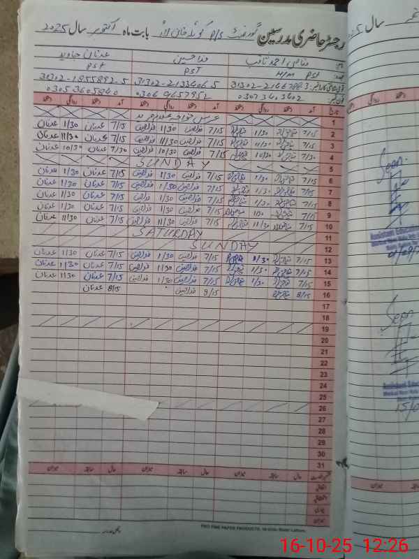 | CNIC | Full Name | Designation | R/C | Absence During Last Calender Month |