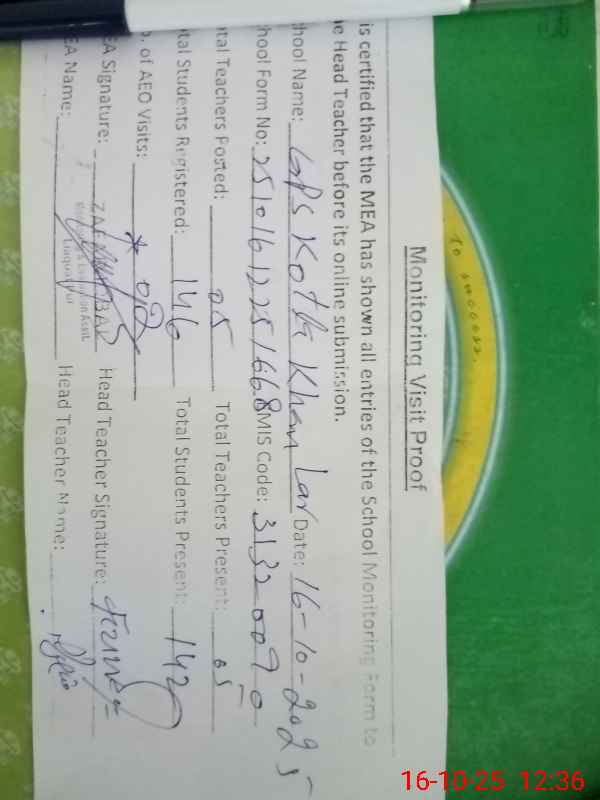 | EMIS Code: 31320090 | Name of School: GPS KOTLA KHAN LAR | |||