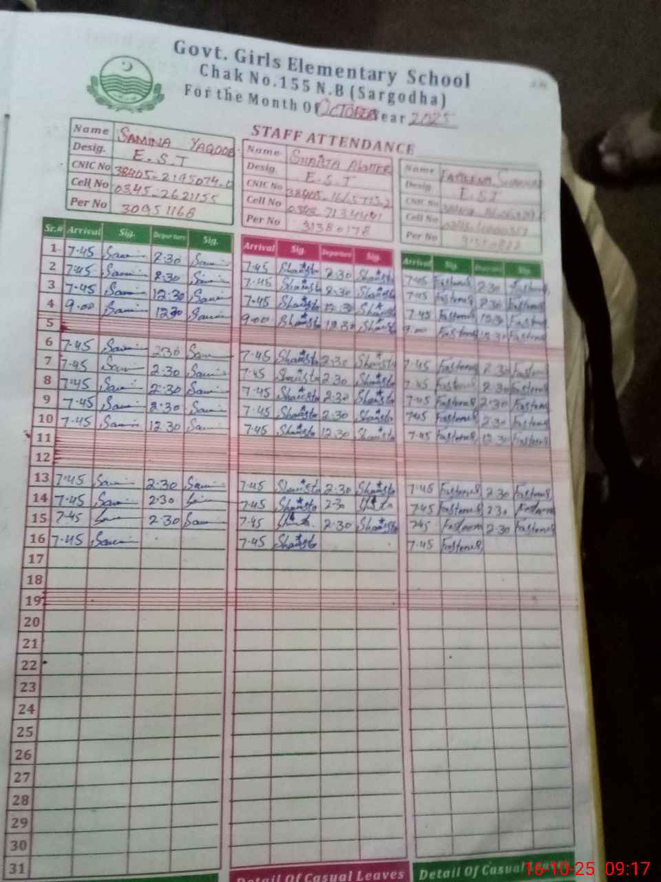 | Name: SA**** YA**** Designation: (School Headmaster's/Headmistress's) EST G Phone/Cell Number: 03**** |