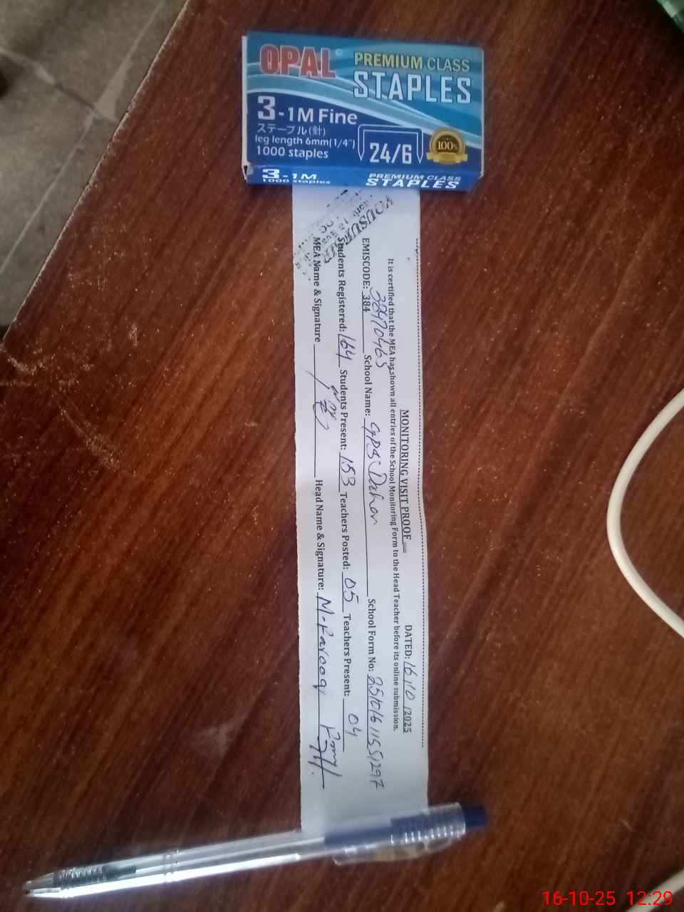 | Attendance Register | Head Teacher | MEA with School | Visit Proof |