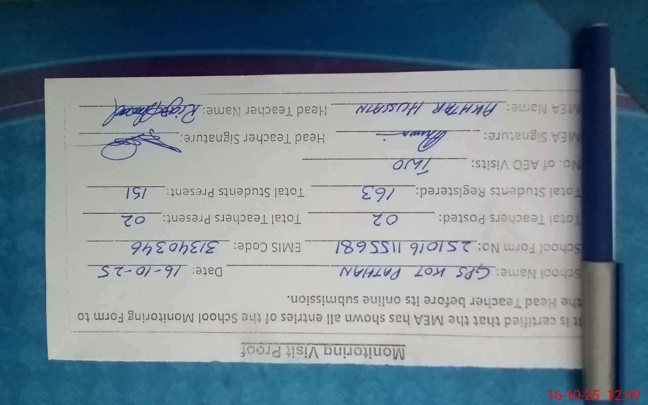 | EMIS Code: 31340346 | Name of School: GPS KOT PATHAN | |||