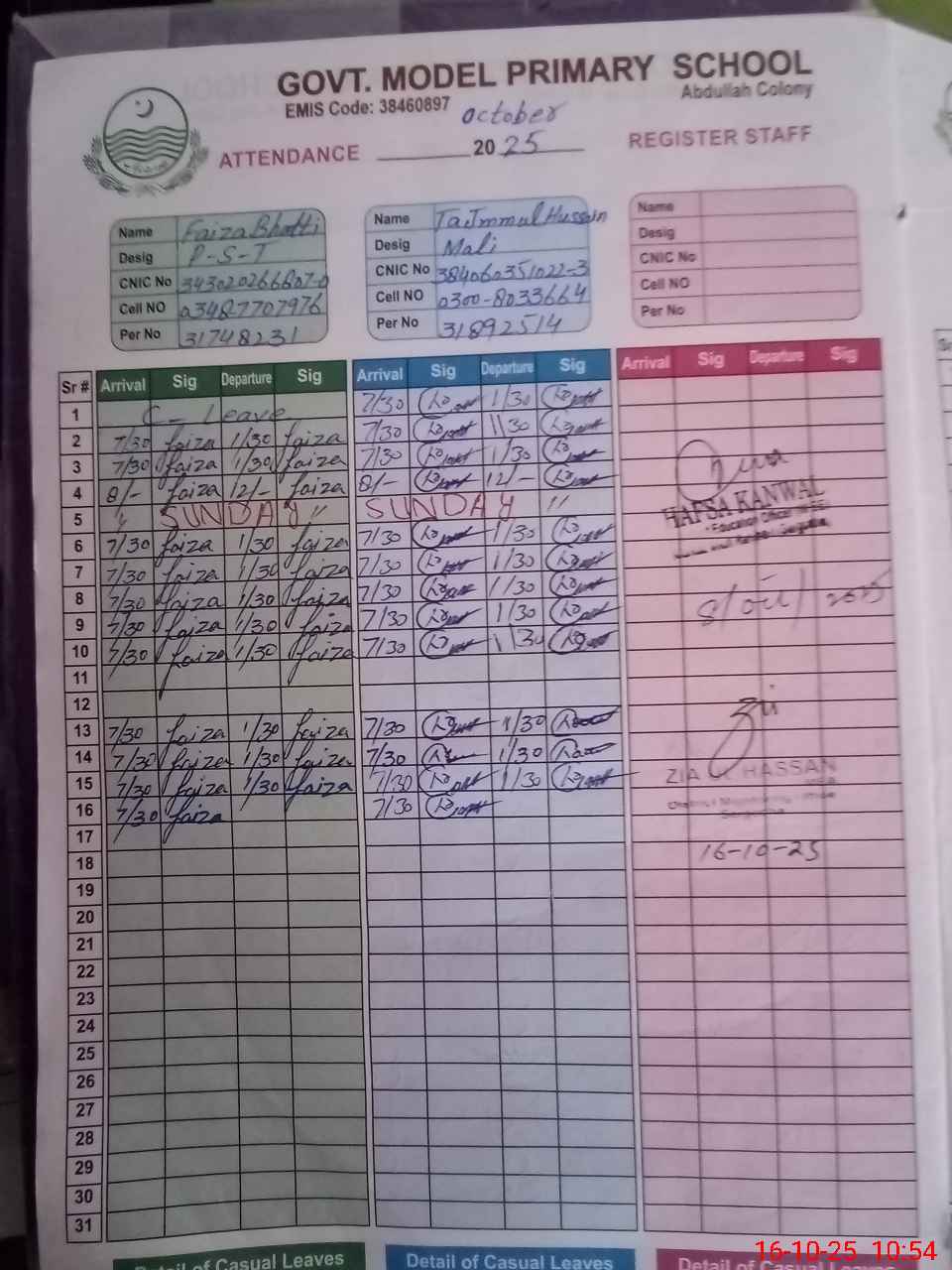 | Name: FA**** BH**** Designation: (School Headmaster's/Headmistress's) PST Phone/Cell Number: 03**** |