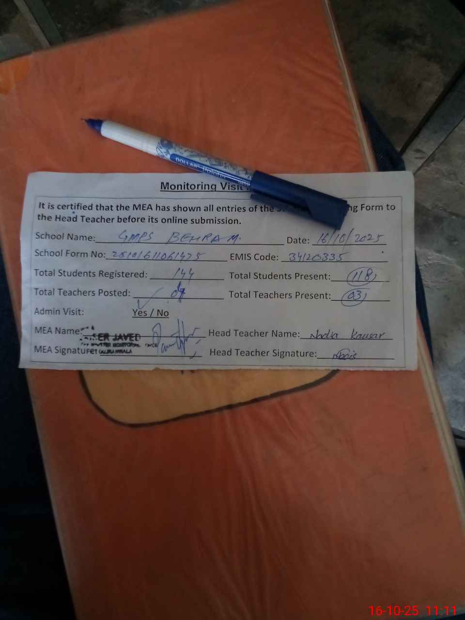 | EMIS Code: 34120335 | Name of School: GMPS BEHRAM | |||