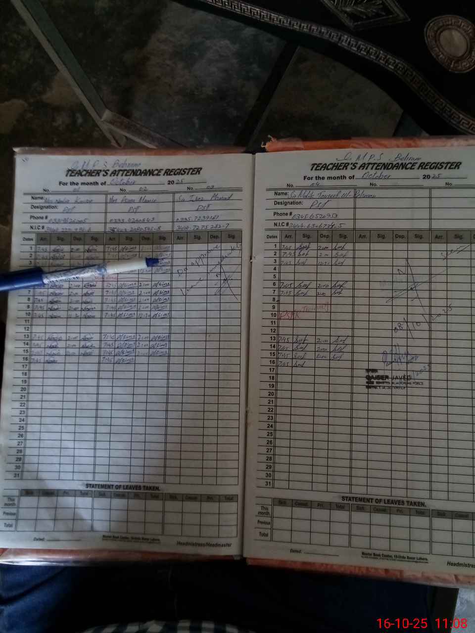 | Remarks (Use Separate Page if Required): Attendence of teachers and students are not up date on sis more over IJAZ AHMED PST applied medical leave and awaiting for approval | |||||