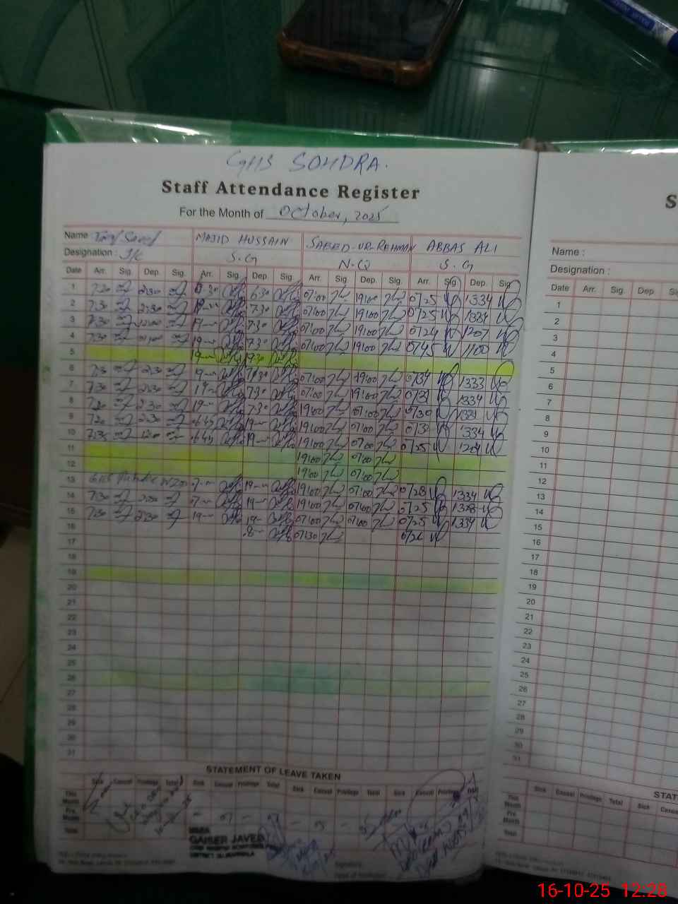 | Remarks (Use Separate Page if Required): Attendence of teachers and students are not up date on sis more over Hafiz Salman EST Applied Umrah leave and awaiting for approval | |||||