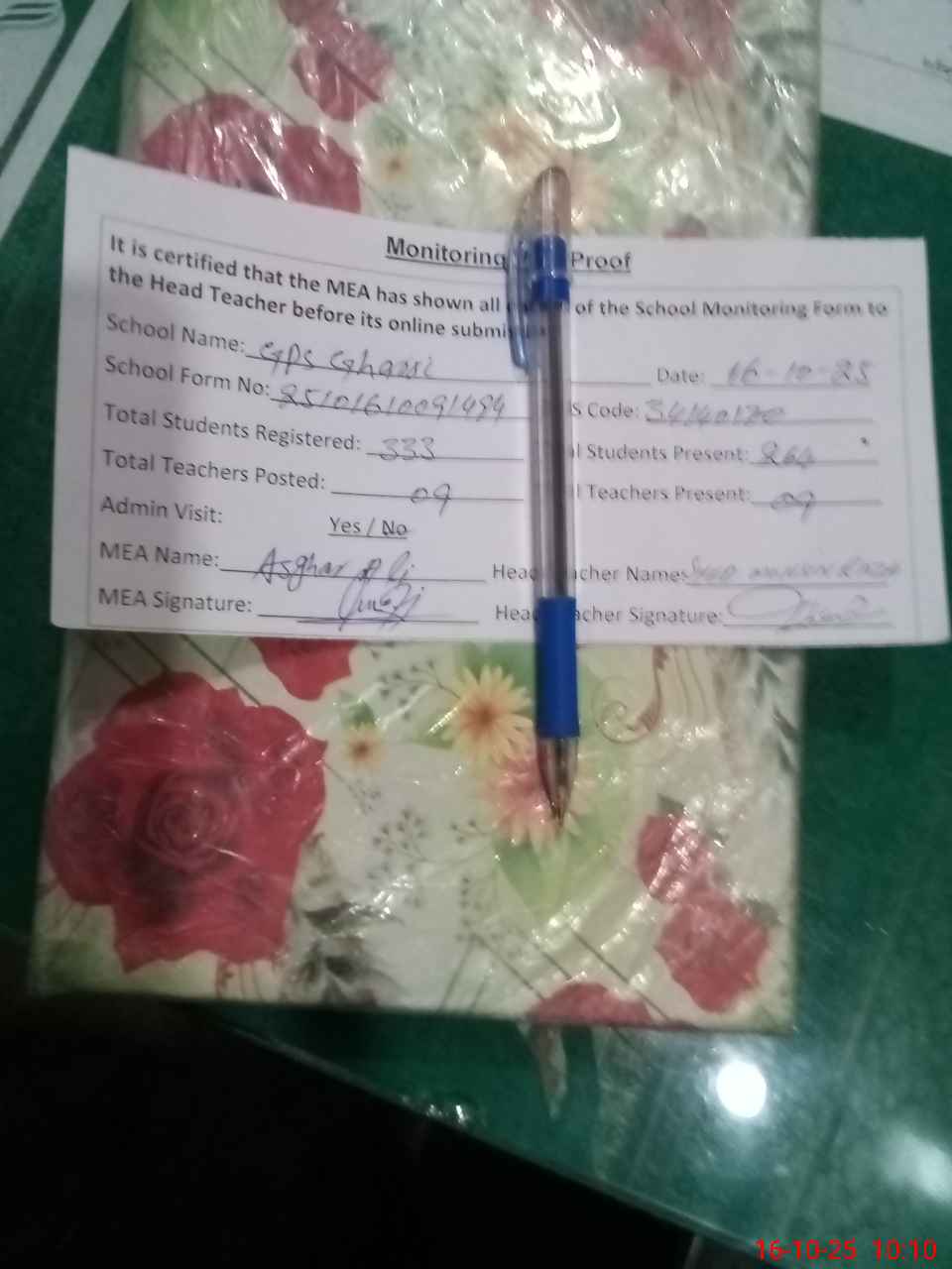 | Certified that this School was Inspected by the Undersigned MEA/DMO Today and the Information Stated Above is as Per Record. | |||||