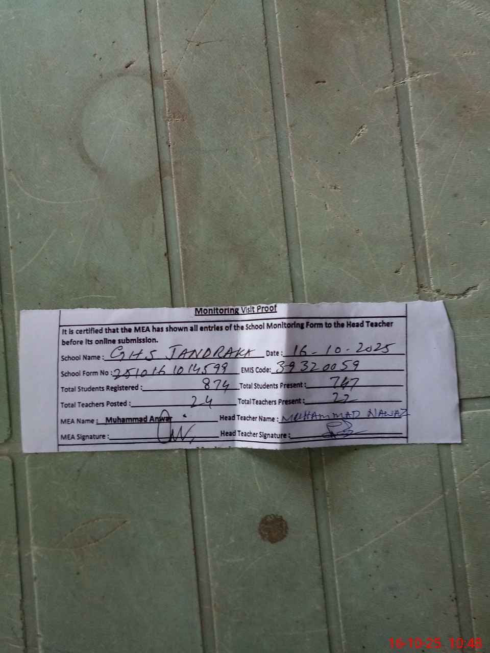 | EMIS Code: 39320059 | Name of School: GHS JANDRAKA | |||