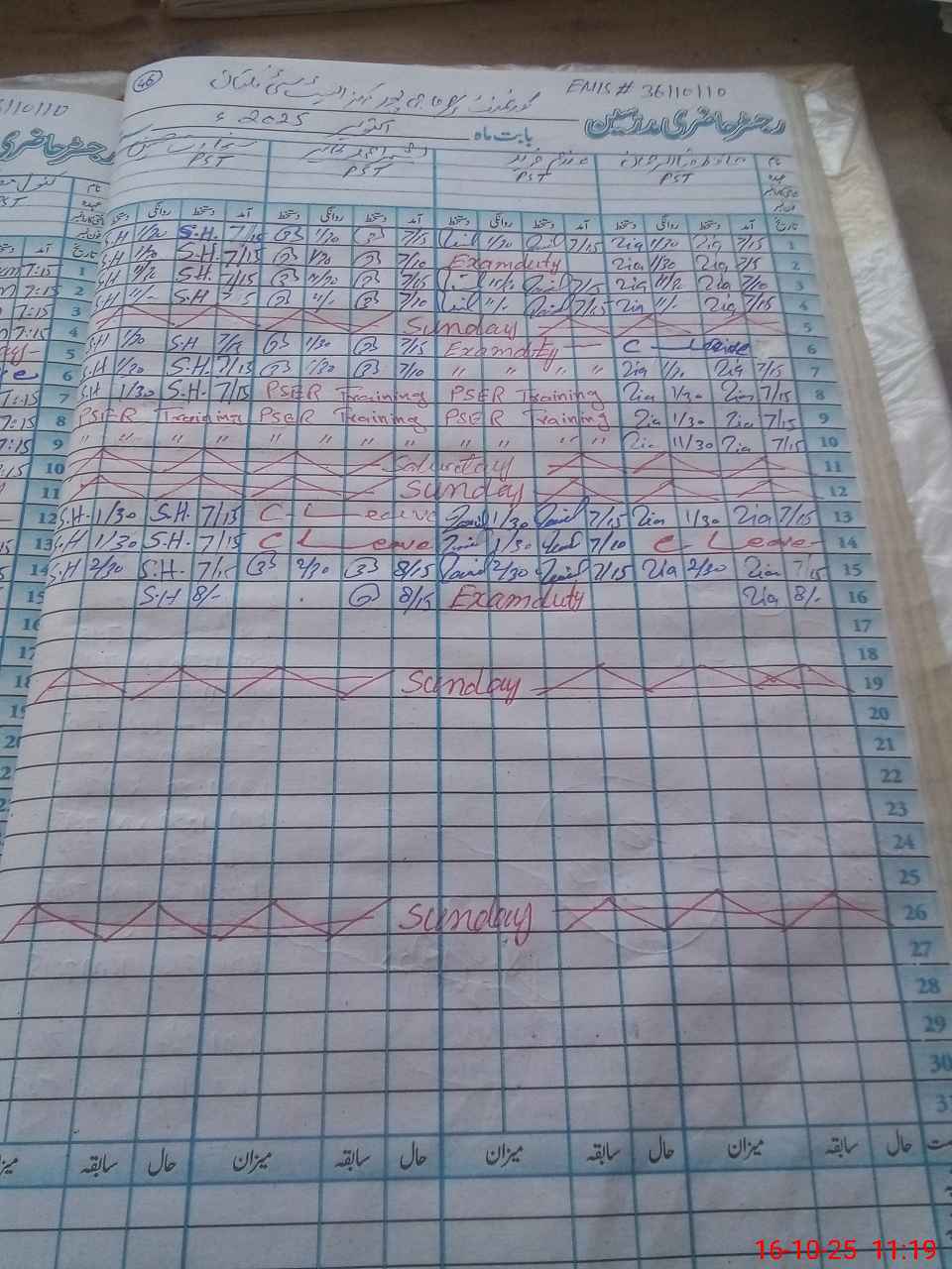 | 36**** | Ma**** Gh**** Fa**** | PST | Regular | 0 | 0 | 0 | 0 | 0 | 0 | 0 | 0 | 0 | Exam Duty |
