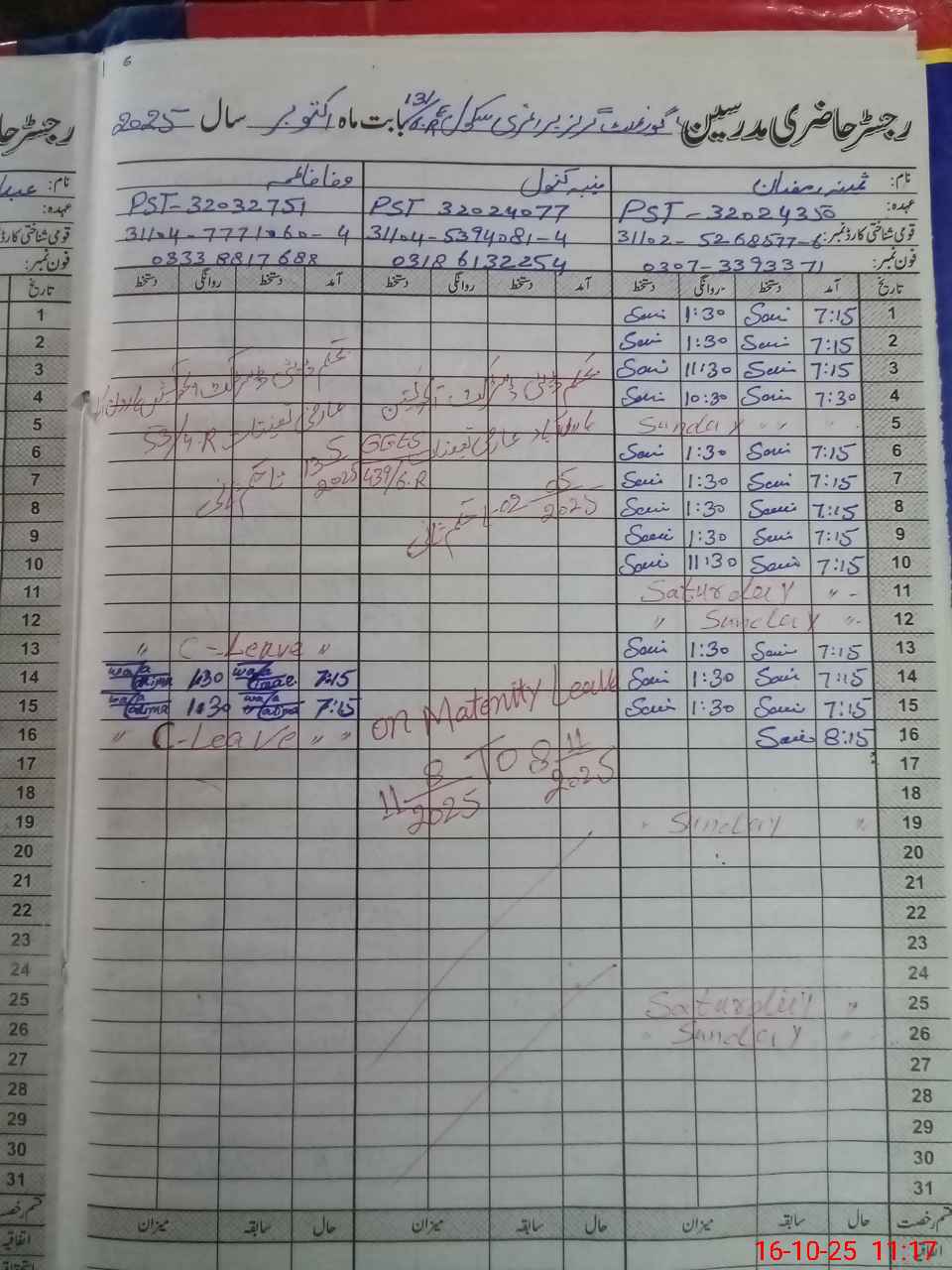 | 31**** | Mu**** Ka**** | PST | Regular | 30 | 0 | 0 | 30 | 0 | 0 | 0 | 0 | 0 | Maternity |