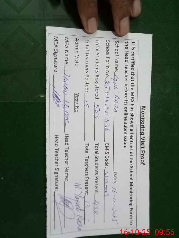 | EMIS Code: 34130009 | Name of School: GHS RAJA | |||
