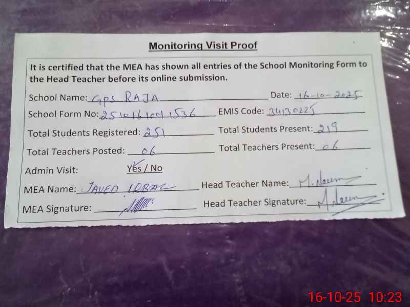 | EMIS Code: 34130225 | Name of School: GPS RAJA | |||
