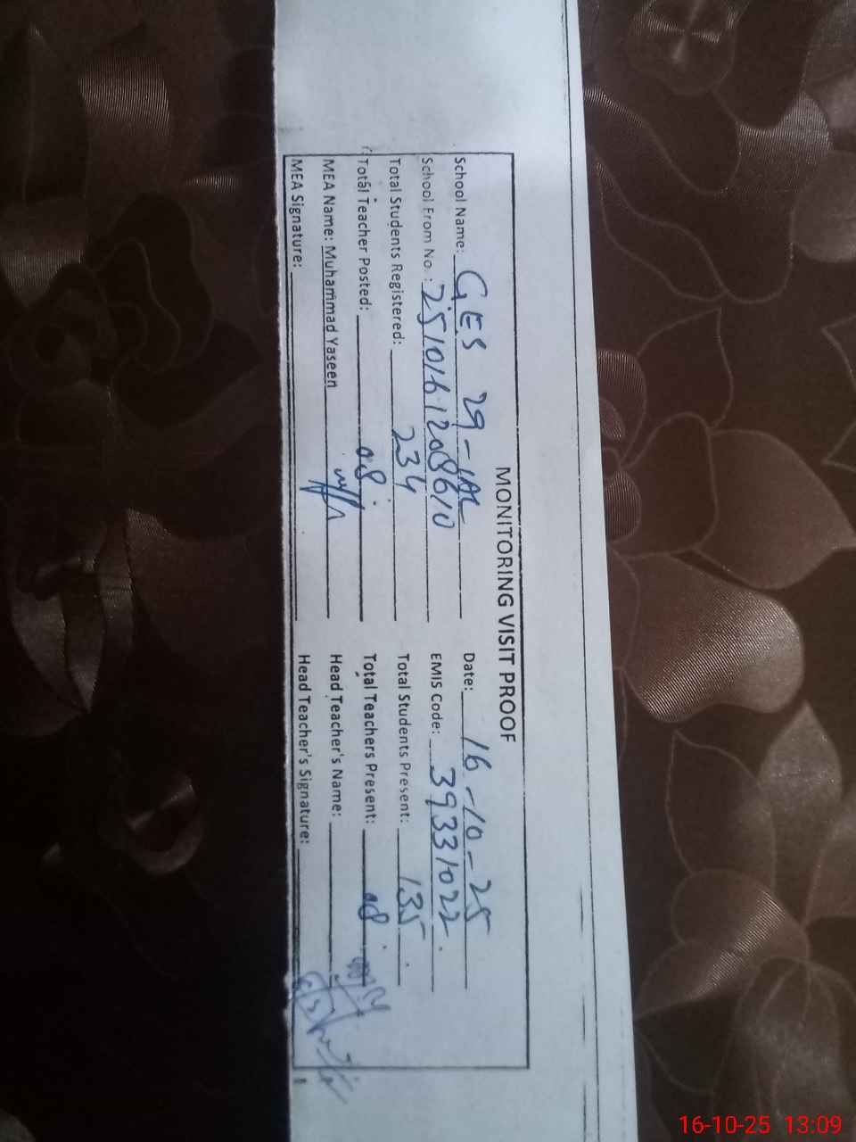 | EMIS Code: 39331022 | Name of School: GES CHAK NO. 29/1-AL | |||