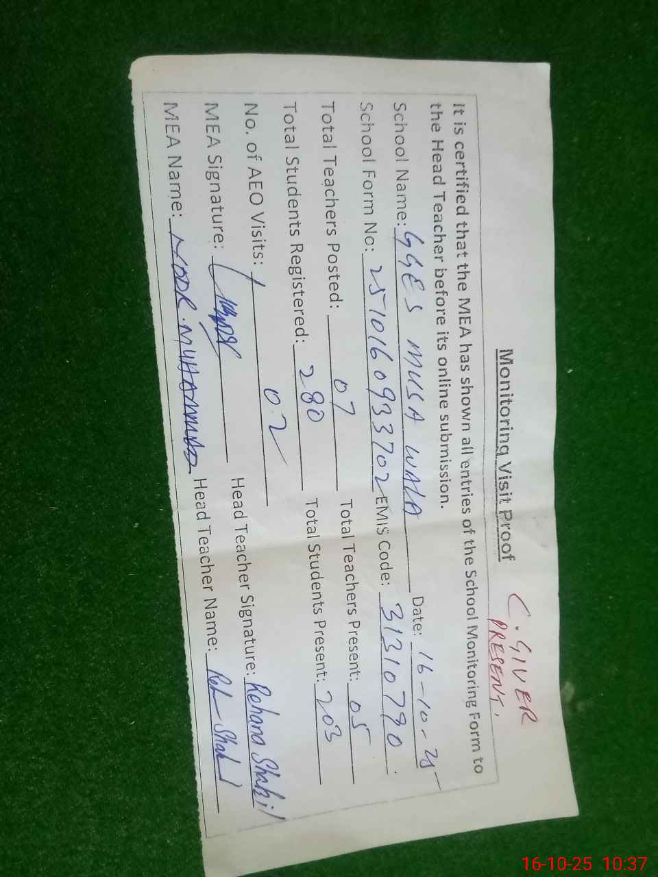 | EMIS Code: 31310790 | Name of School: GGES MUSA WALA | |||