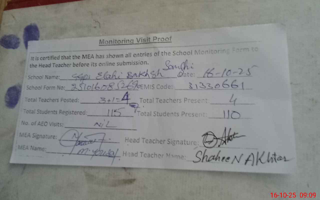| EMIS Code: 31330661 | Name of School: GGPS ELAHI BAKHSH SANGHI | |||