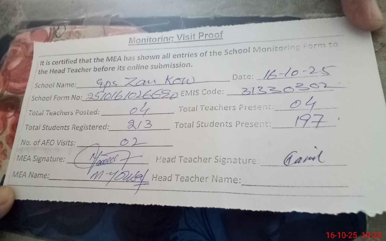 | EMIS Code: 31330302 | Name of School: GPS ZAN KOW PO RUKAN PUR | |||